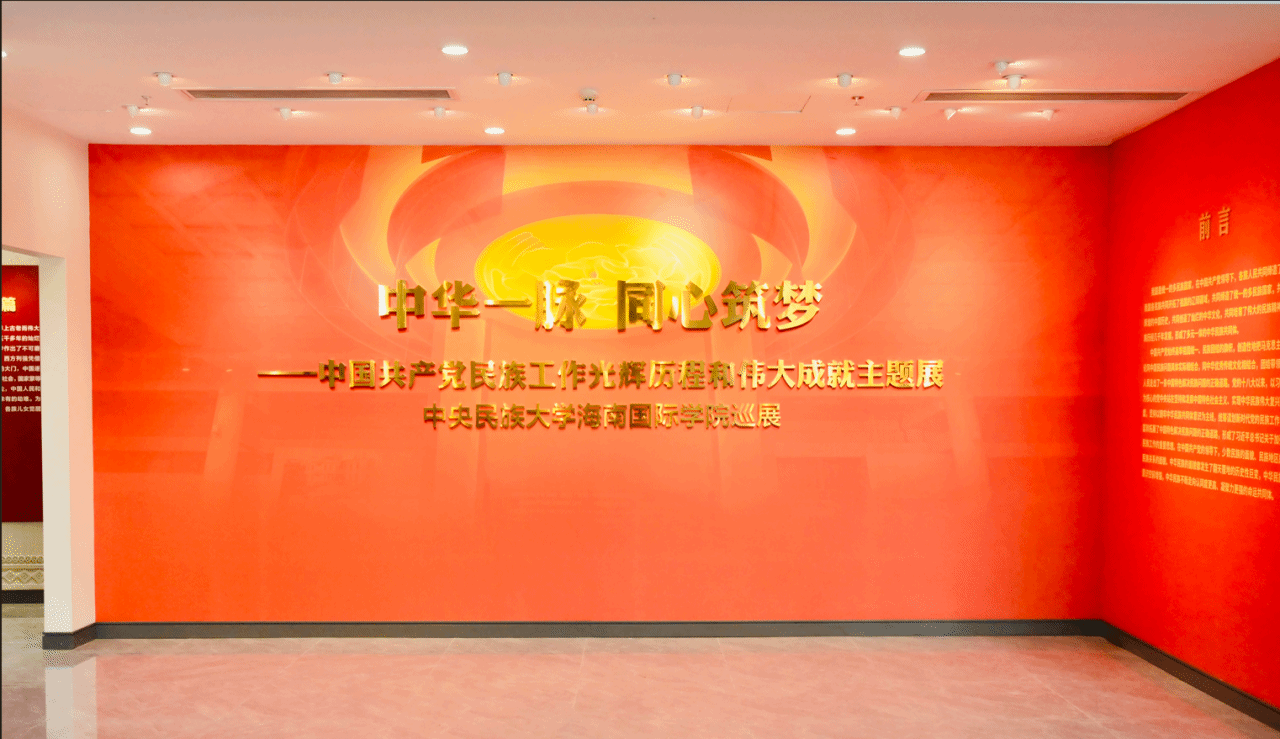 在这里,你将看到民族工作的历史脉络与时代新篇交相辉映,海南本土民族工作实践与全国民族工作大局同频共振。欢迎来到中央民族大学海南国际学院博文楼一层,于生动叙事中,感悟中国共产党民族工作的初心使命,共绘中华民族同心筑梦的美好图景,为持续推动中华民族共同体建设贡献力量!