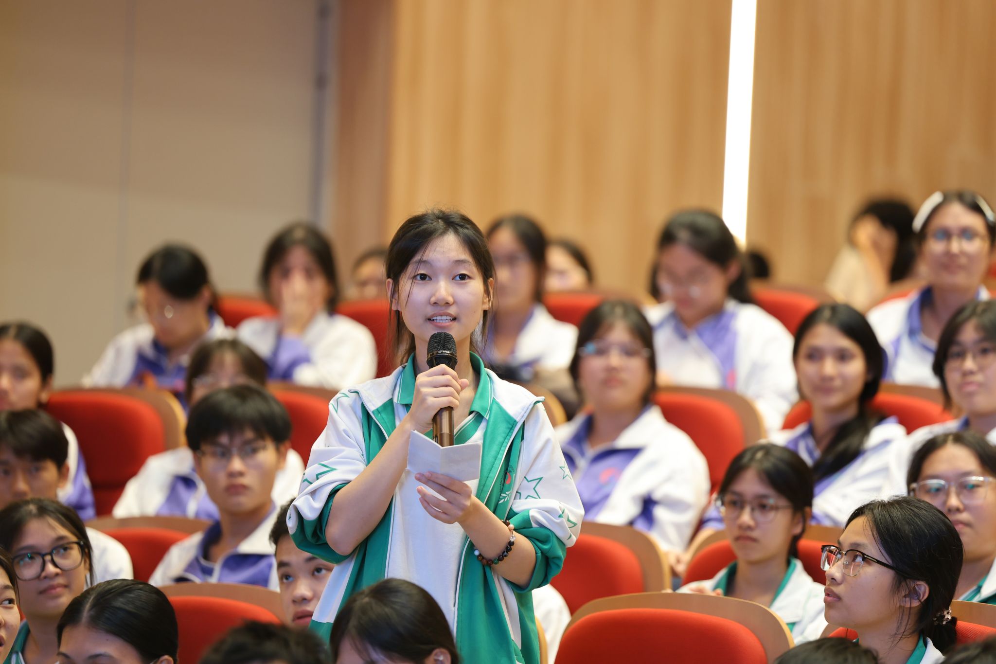 在互动环节,蒙曼与大家就文化交流、阅读学习等话题进行了讨论交流。她勉励同学们,要脚踏大地,胸怀天下,在中华民族伟大复兴的“国之大道”上,走出自己的从容、淡定与开阔。